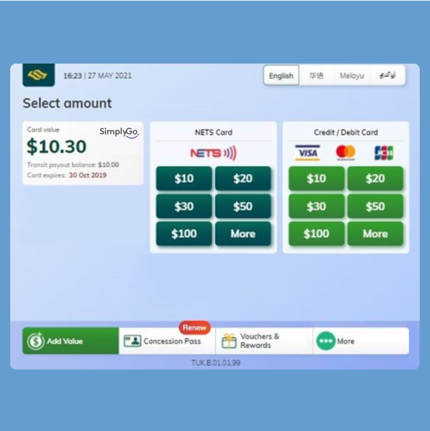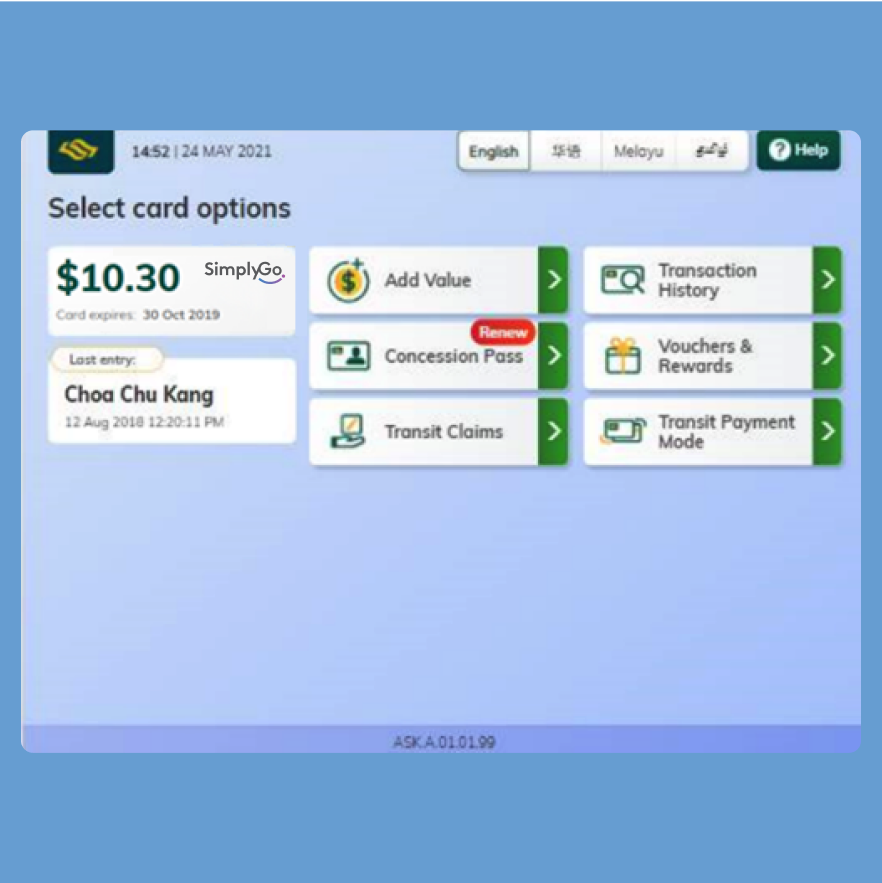 The extension can be done at any ticketing service kiosk (i.e. Top-up Kiosk or SimplyGo Kiosk), SimplyGo Ticket Office/Ticketing Service Centre, or Passenger Service Centre.