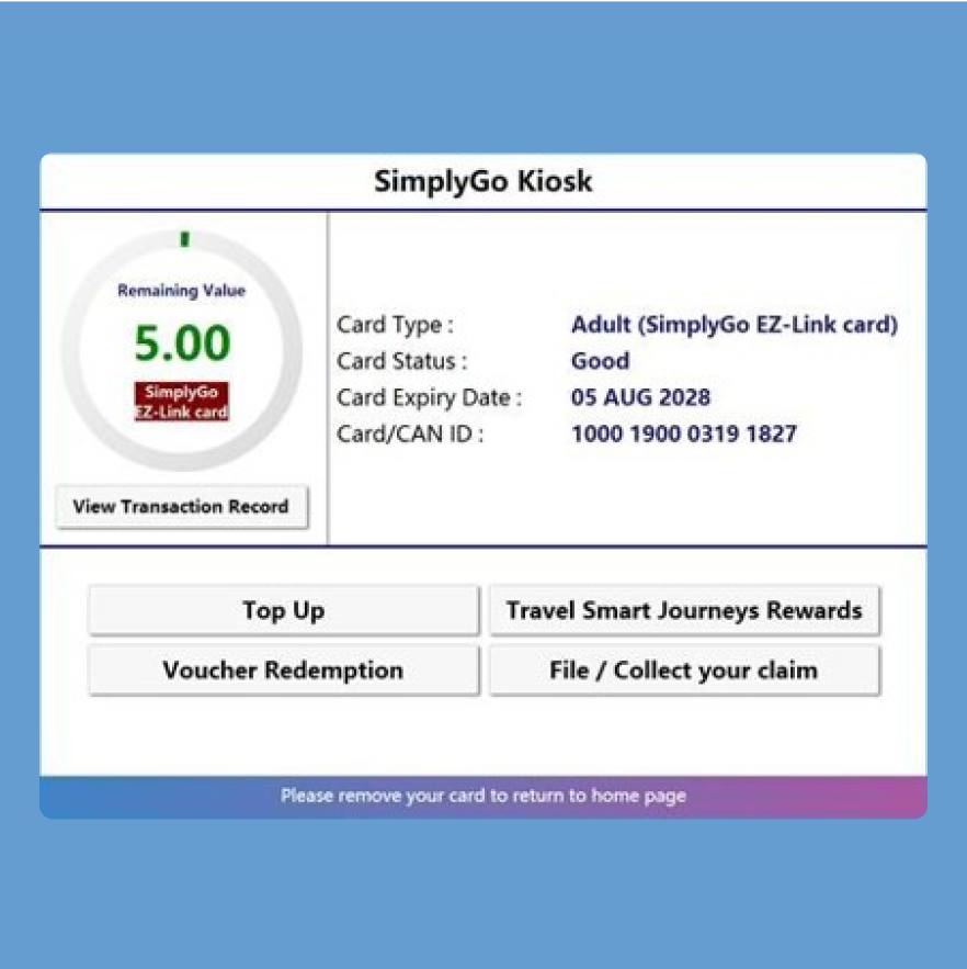 *Replacement cards printed and collected at the SimplyGo Kiosk can be used immediately. No activation is needed.